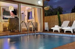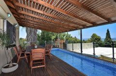 החצר מתעטפת בנופים קסומים ומיד עם היציאה אליה מורגשת בריזה נעימה. האורחים יהנו משחייה בבריכה (בריכת השחייה מחוממת בעונת החורף), ואף יהנו ממנוחה בפינות הישיבה ומשיזוף במיטות השיזוף.