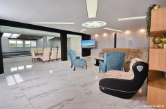 פינת ישיבה מפנקת ונוחה ל-10 איש, מסך 60 אינטש, שולחן סלון.