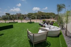 החצר מכוסה במדשאות והיא משלבת פינות ישיבה, מיטות שיזוף, ג'קוזי ספא, ובריכת שחייה.